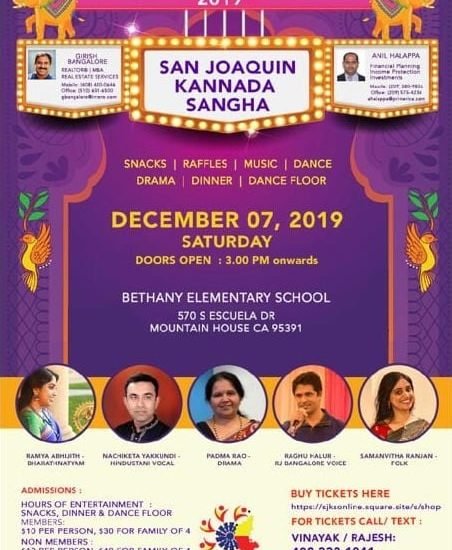 San Joaquin Kannada Sangha a brand new Kannada Sangha in Mountain House, CA is hosting its first event to mark “Kannada Rajyothsava” on December 07, 2019. So please be there to cheer for the event and give your shout outs.